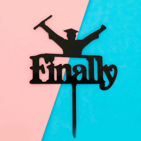 Nuova cerimonia festa di laurea all'ingrosso unico finialy i did go card doctor hat black gold acrilico graduation cake topper